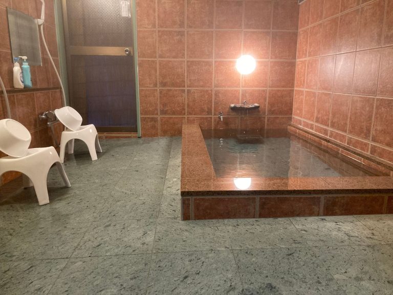 男性用浴室・女性用浴室ともにシャワー及びカランがございます。浴槽の中にはブラックシリカが沈めてあります。付属サービスとしてボディーソープ・シャンプー・リンスがございます。